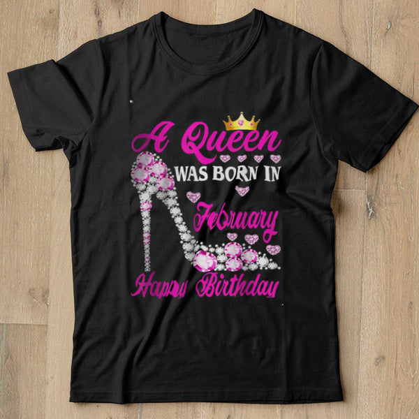 A Queen Was Born In February Happy Birthday To Me shoes T Shirt - Nekotee